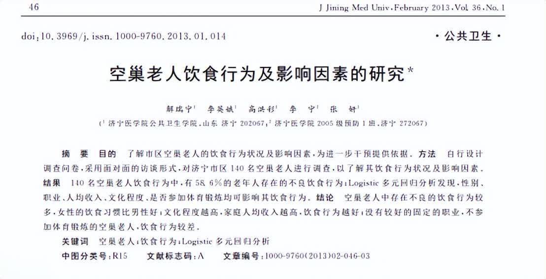 参考资料[1]解瑞宁,李英娥悦配资,高洪彩,等.空巢老人饮食行为及影响因素的研究[J].济宁医学院学报,2013,36(01):46-48.
